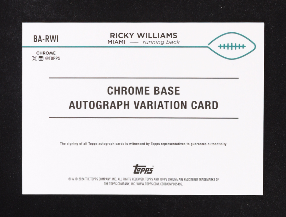 Ricky Williams 2024 Topps Chrome Autographs Refractors #BARWI