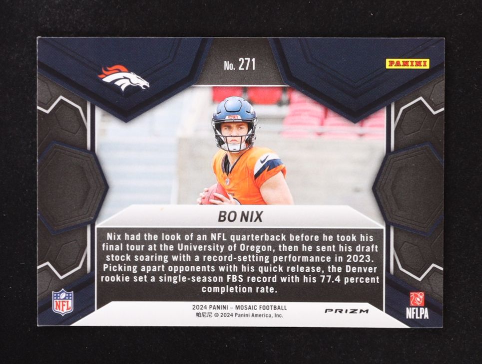 Bo Nix 2024 Panini Mosaic Mosaic Reactive Yellow #271 DEB RC