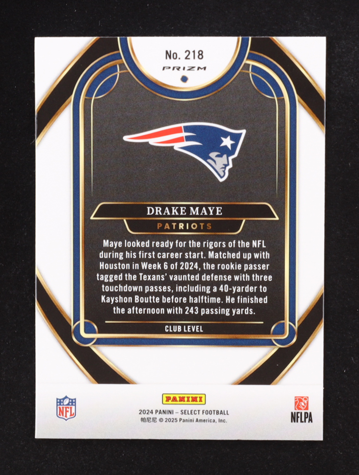 Drake Maye 2024 Select Prizm Red and Yellow Shock #218 RC