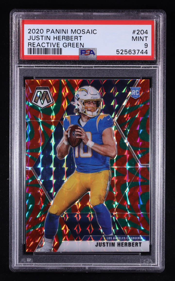 Justin Herbert 2020 Panini Mosaic Mosaic Reactive Green #204 RC (PSA 9)