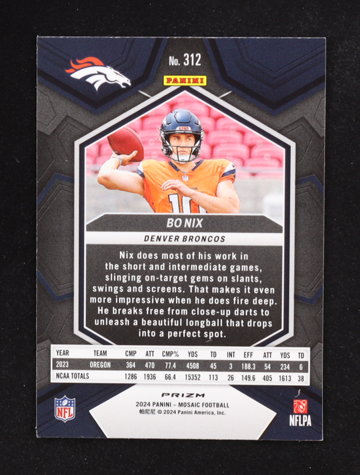 Bo Nix 2024 Panini Mosaic Mosaic Camo Pink #312 RC
