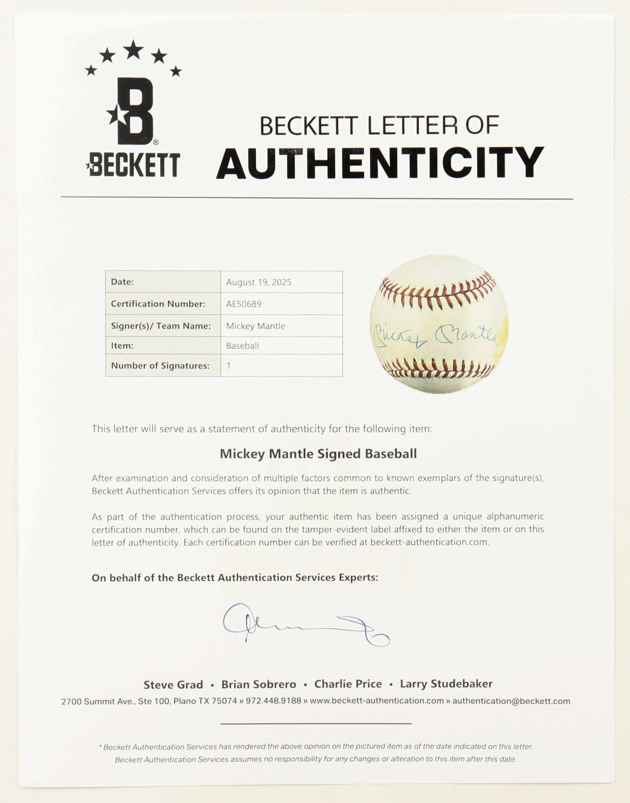 Mickey Mantle Signed OAL Baseball (Beckett)