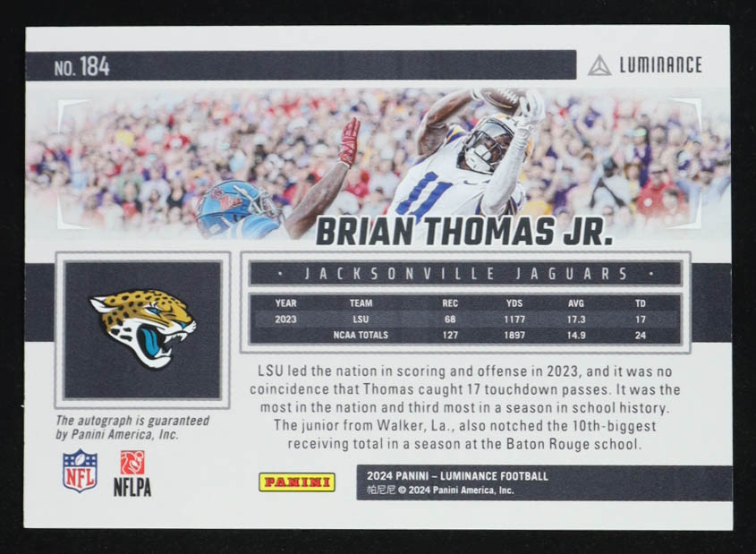 Brian Thomas Jr 2024 Panini Luminance Autographs #184 #07/50 RC