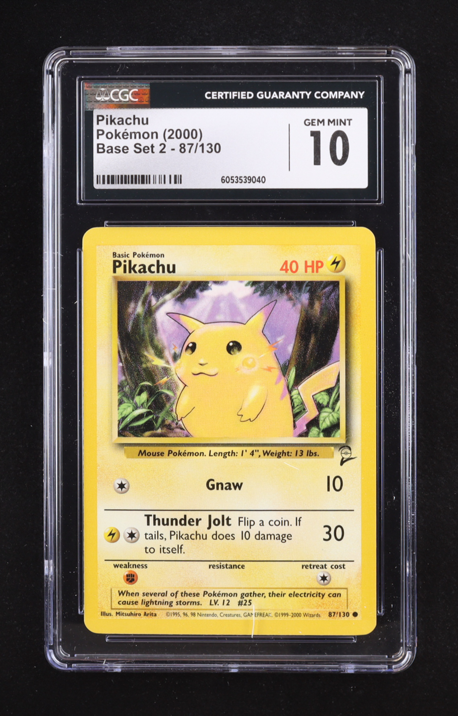 Pikachu (Yellow Cheeks) 1999 Pokemon Base 2 Unlimited #87 (CGC 10)