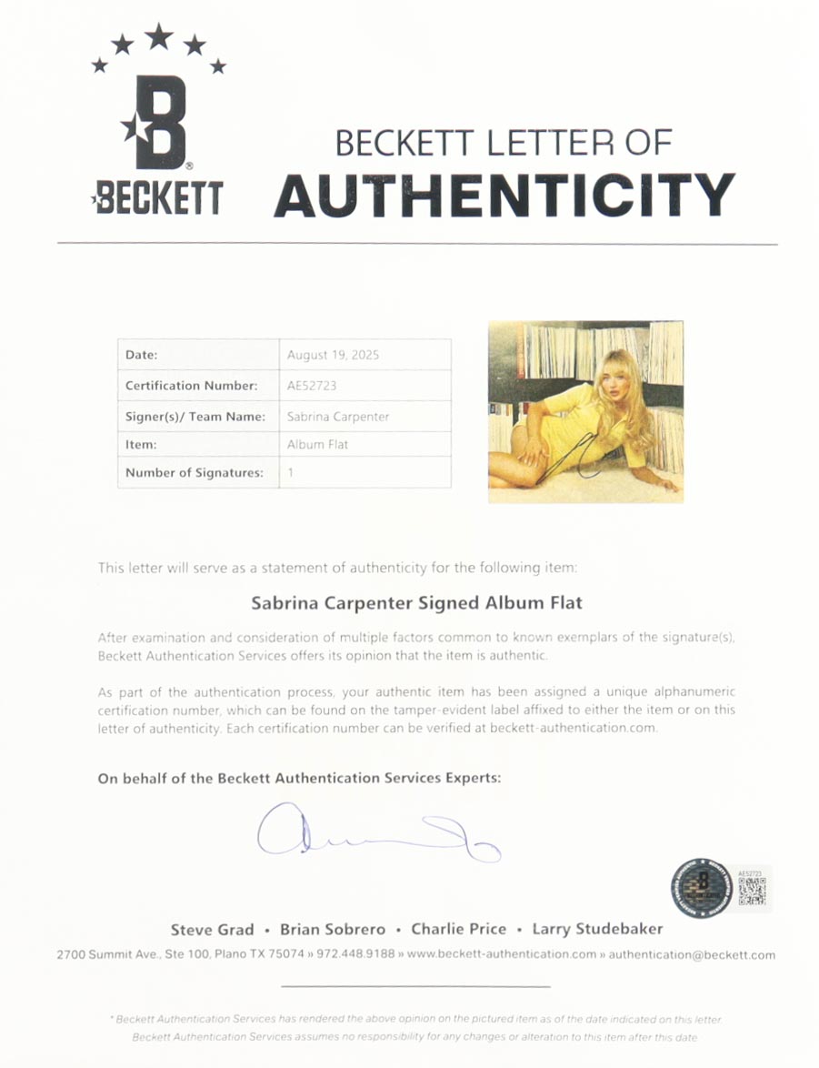 Sabrina Carpenter Signed "Short N' Sweet" Custom Framed Vinyl Album Cover Display With Record (Beckett)