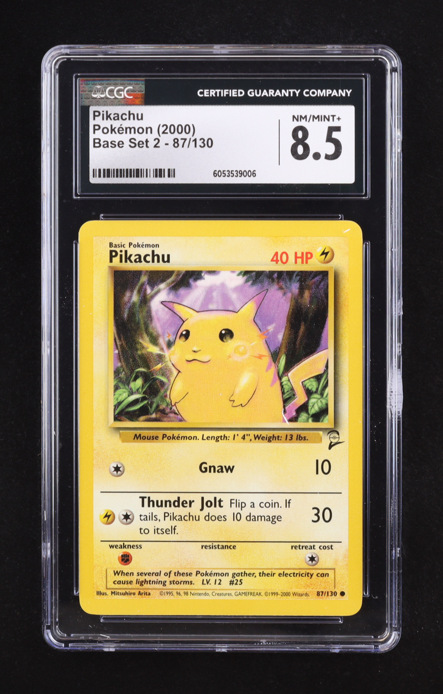 Pikachu (Yellow Cheeks) 1999 Pokemon Base 2 Unlimited #87 (CGC 8.5)