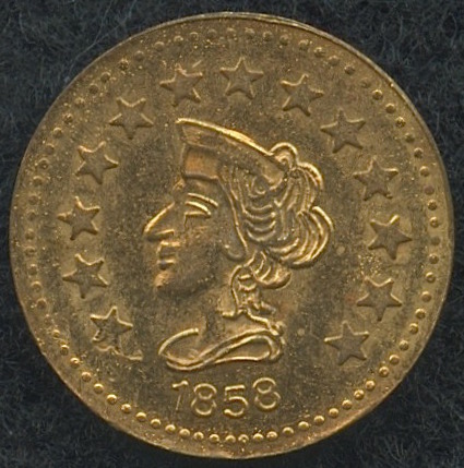 Over 450 varieties are known to exist, some undated but most bearing dates between 1852 and 1882. Most are anonymous or identified only by initials, but research over the years has made it possible to attribute the majority of the issues to manufacturing jewelers in San Francisco, California and Leavenworth, Kansas; some may have been made in New York and New Orleans.