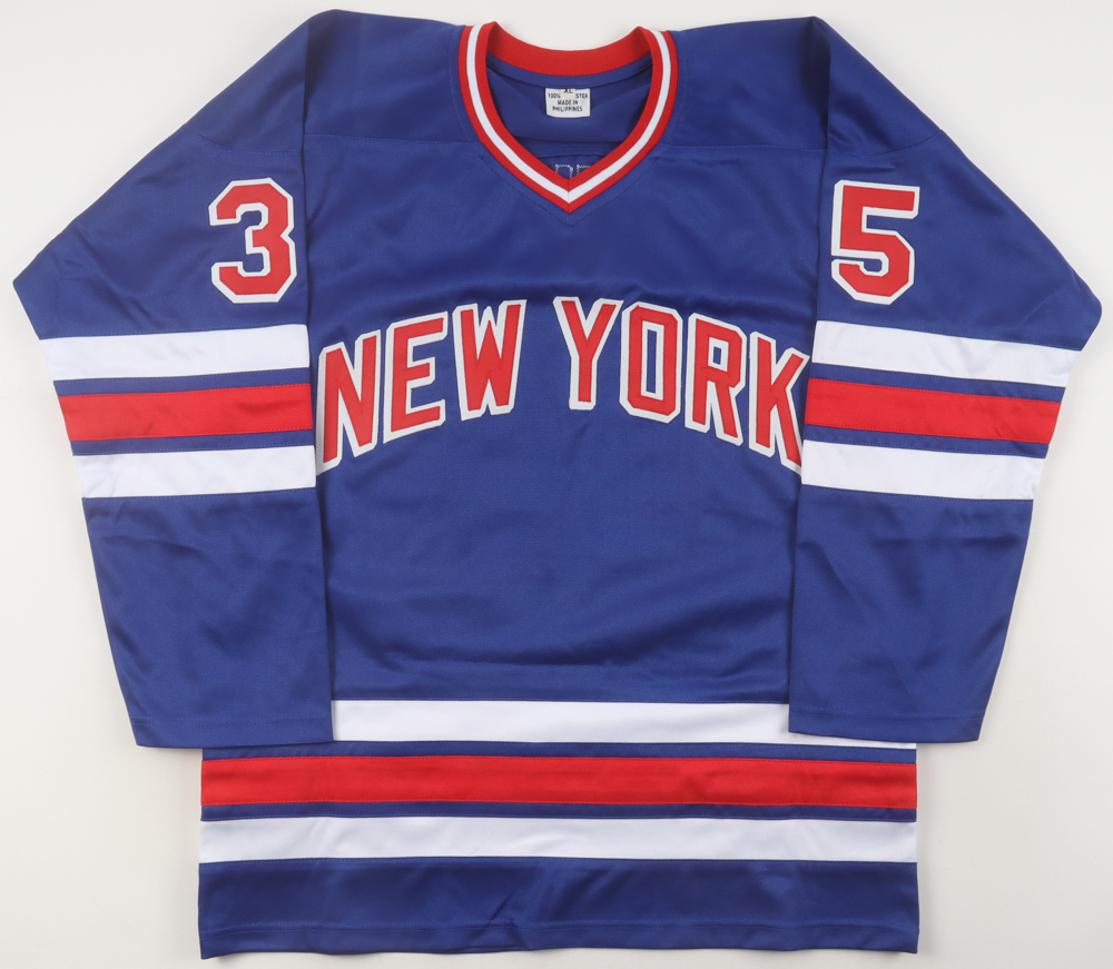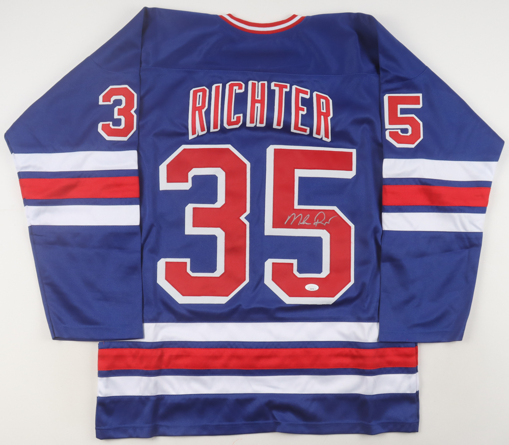 Custom jersey with everything sewn on, size XL. Hand-signed by Mike Richter (HOF).