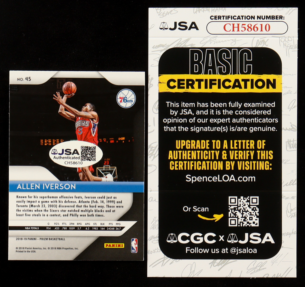 Allen Iverson Signed 2018-19 Panini Prizm #45 (JSA)