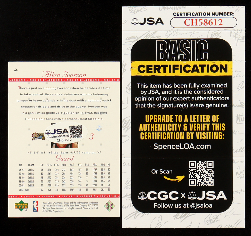 Allen Iverson Signed 2001-02 SP Authentic #64 (JSA)