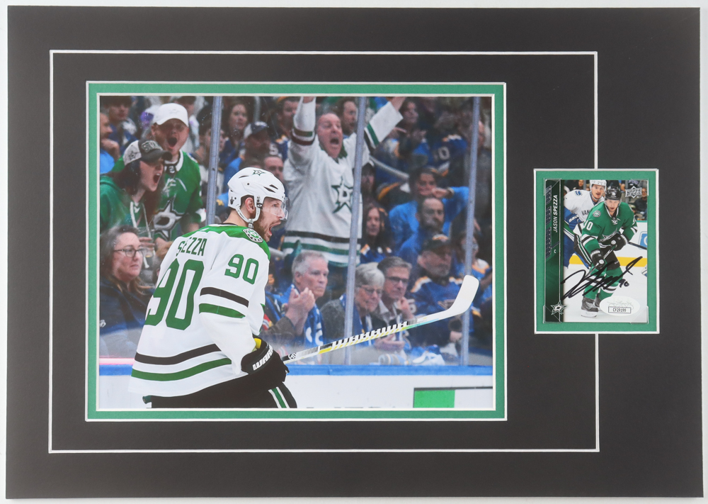 Custom lithograph measures 12" x 17" in size. Photo measures approximately 8" x 10" in size, hand-signed by Jason Spezza (Dallas Stars). Please note that the sports card is included as shown.