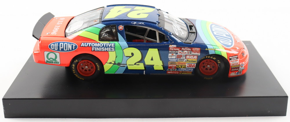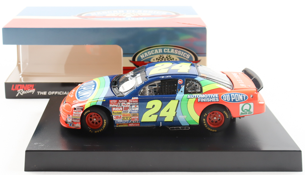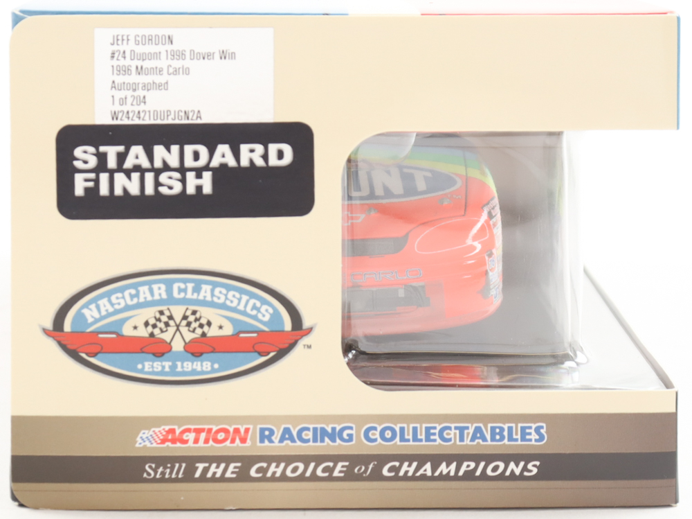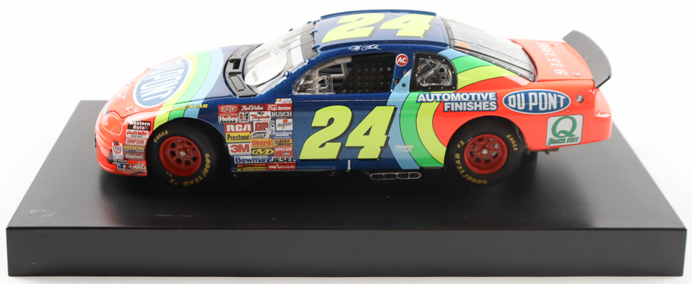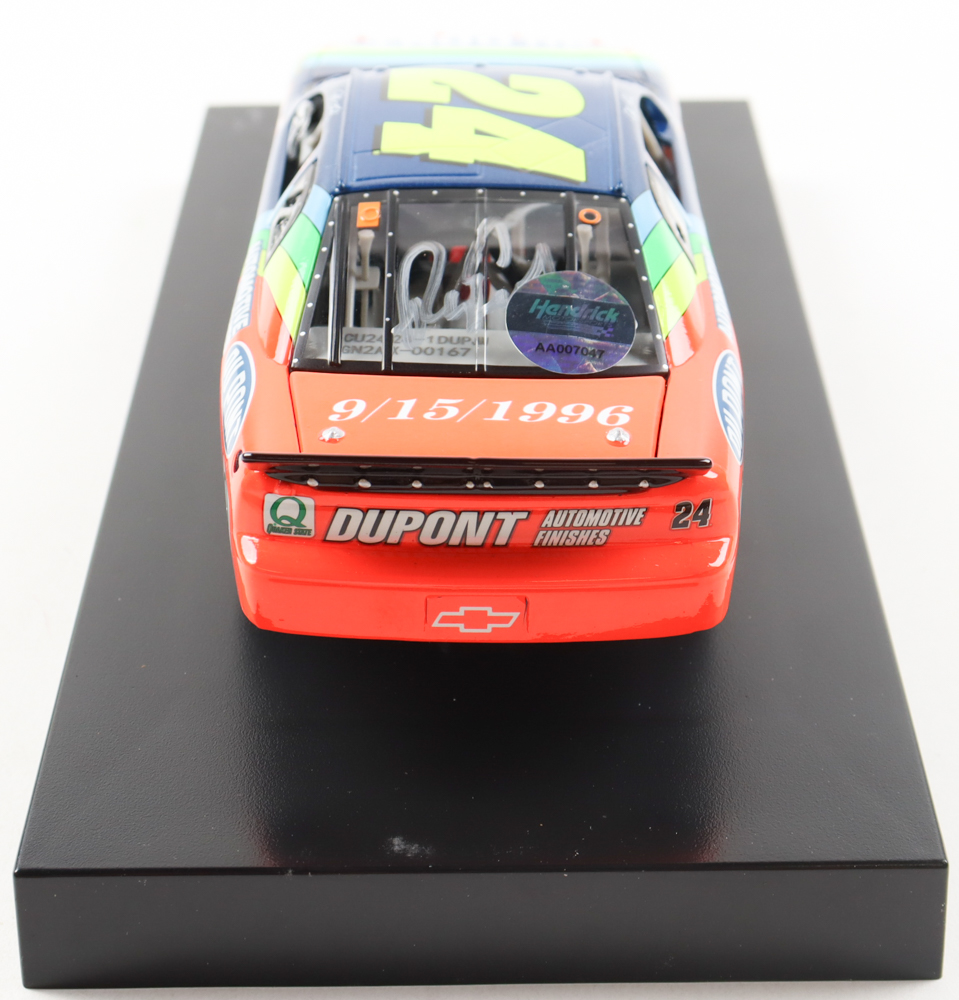 Premium die-cast car hand-signed on the windshield by Jeff Gordon (HOF) and on rear window by Ray Evernham (Crew Chief). This die-cast car is limited edition to just 204 produced and comes in the original packaging as shown.