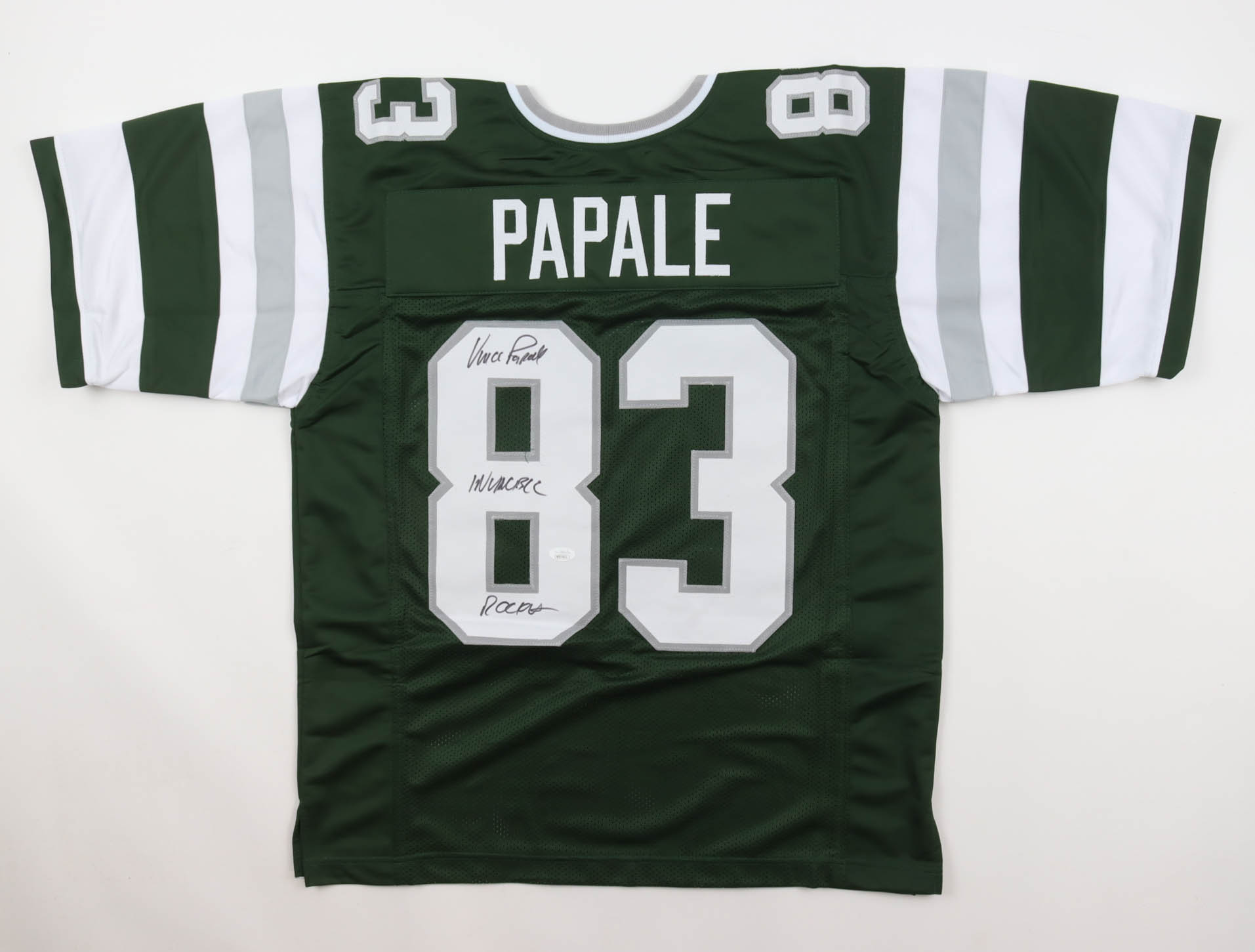 Custom jersey. Everything is sewn on, size XL. Hand-signed and inscribed by Vince Papale.