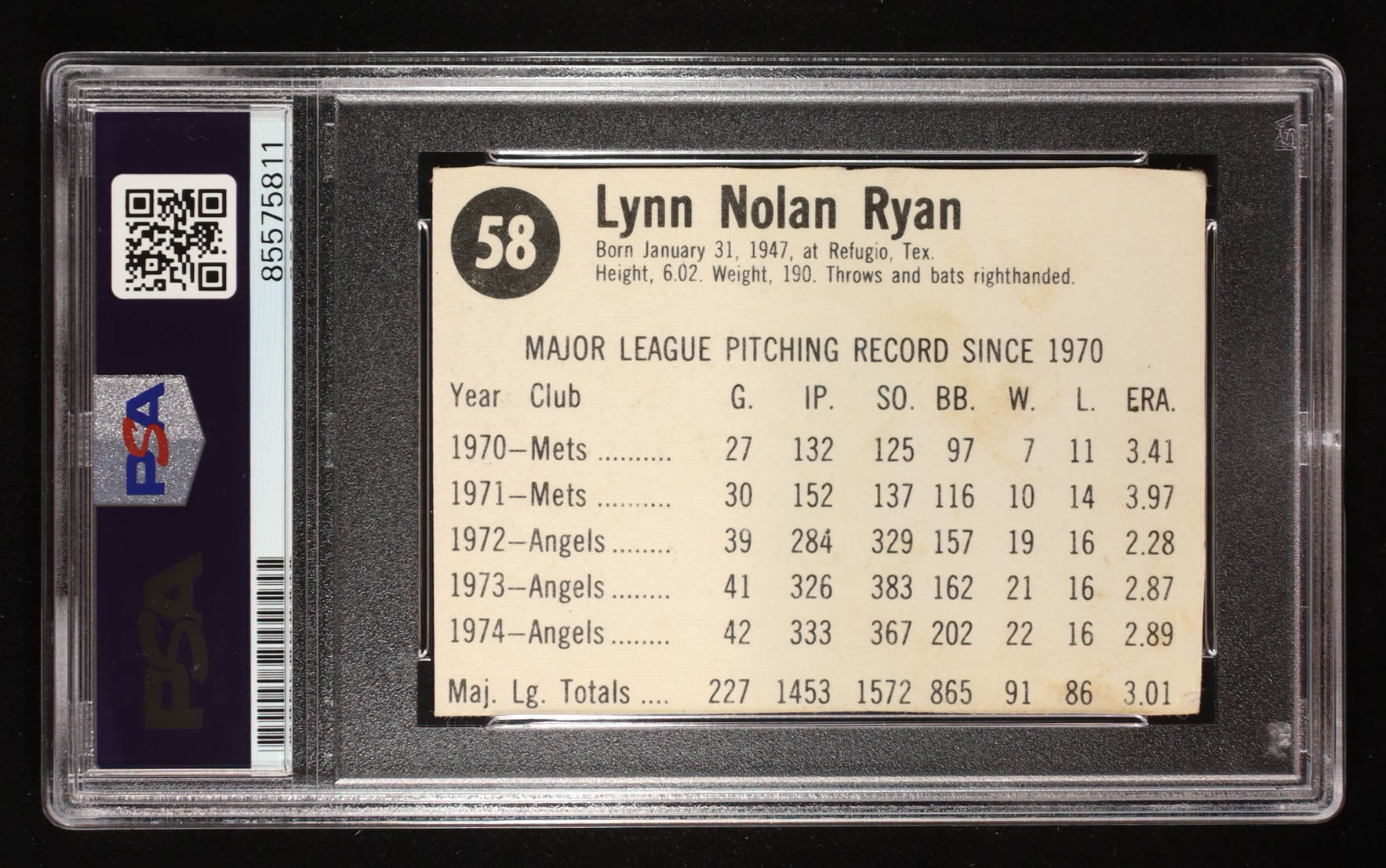 Nolan Ryan Signed 1975 Hostess #58 "108.5 MPH Fastball" (PSA | Auto 10)