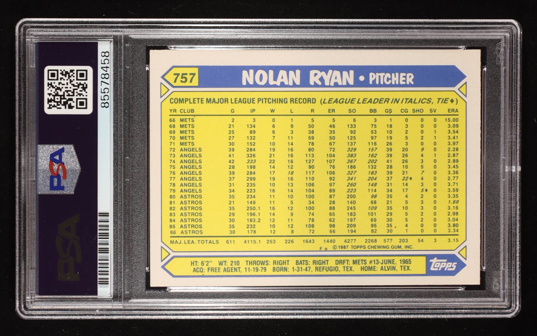 Nolan Ryan Signed 1987 Topps Tiffany #757 (PSA | Auto 9)