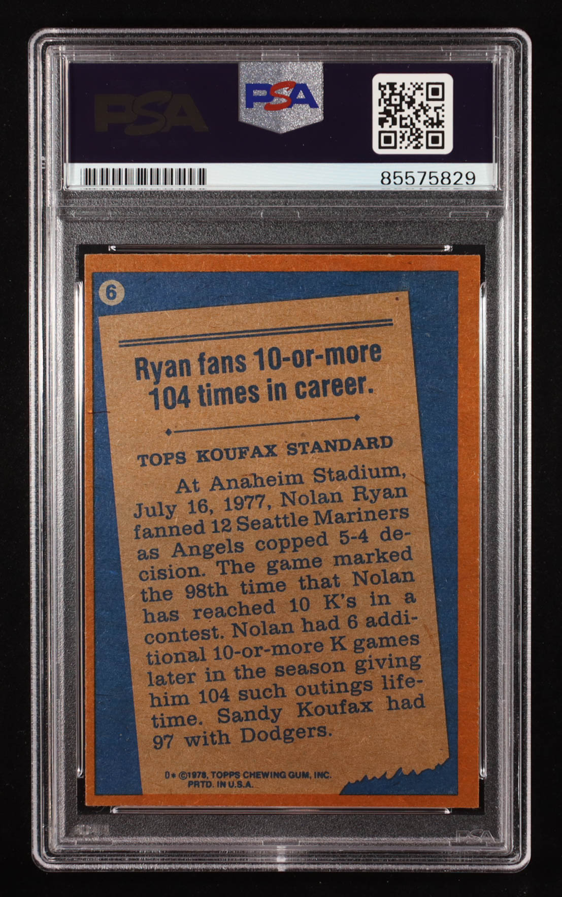 Nolan Ryan Signed 1978 Topps #6 (PSA | Auto 10)