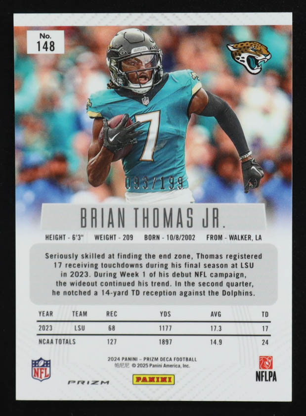 Brian Thomas Jr. 2024 Panini Prizm Deca Prizms Red #148 #93/199 RC