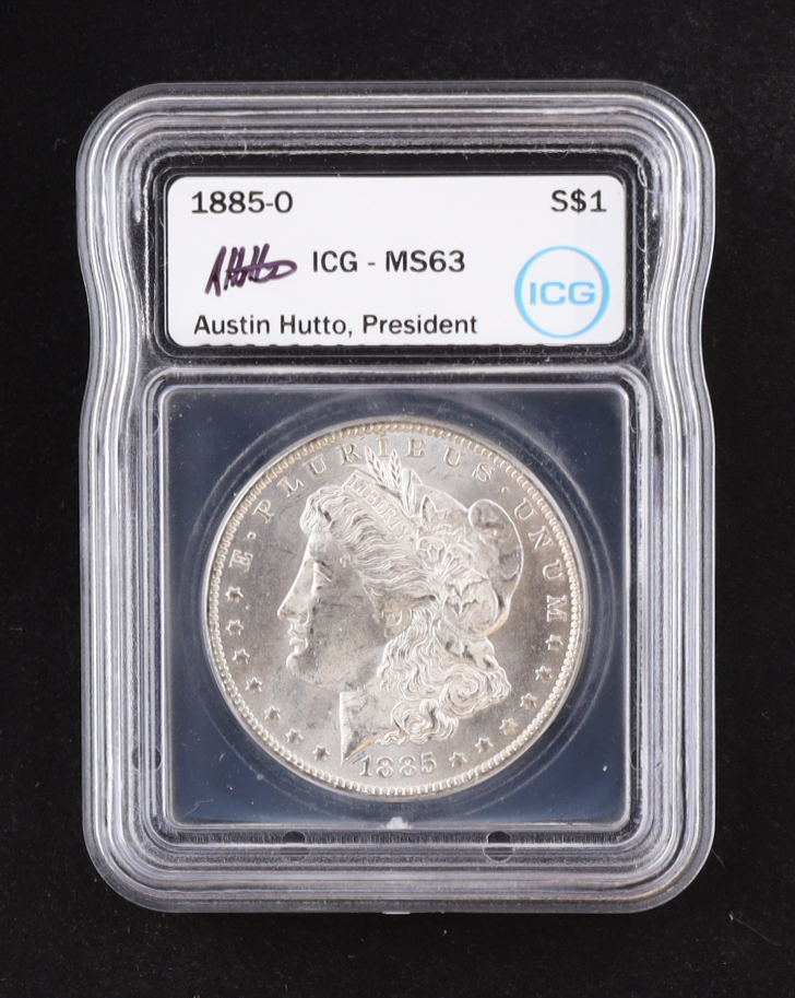 1885-O Morgan Silver Dollar - Austin Hutto Signature Label (ICG MS63)