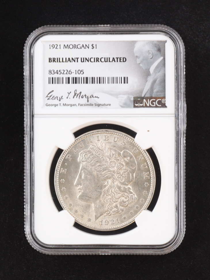 1921 Morgan Silver Dollar - George T. Morgan Signature Label (NGC Brilliant Uncirculated)