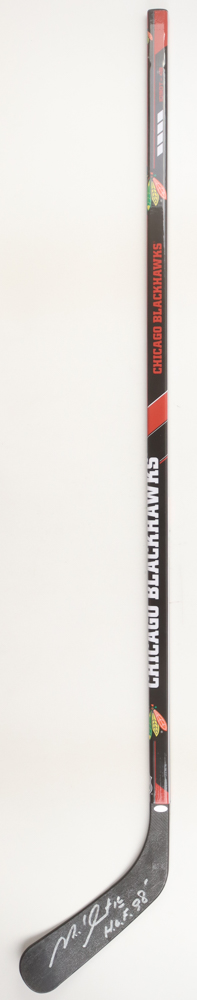 Michel Goulet Signed Blackhawks Hockey Stick Inscribed "HOF 98" (Schwartz)