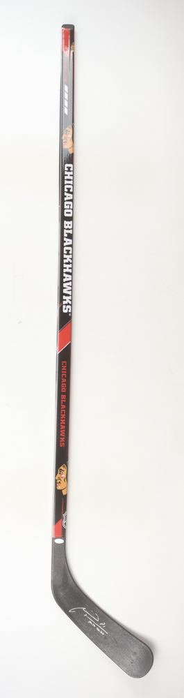 Chicago Blackhawks 48" full-size hockey stick has been hand-signed and inscribed by Marian Hossa (HOF).