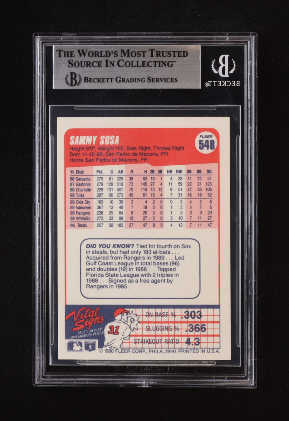Sammy Sosa Signed 1990 Fleer #548 RC (BGS)