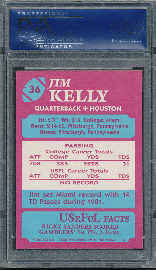 1984 Topps USFL #36 Jim Kelly RC (PSA 9)