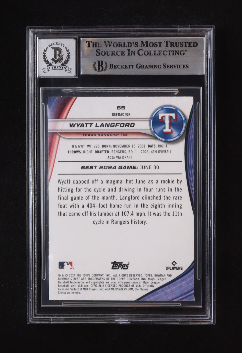Wyatt Langford Signed 2024 Bowman's Best Refractors #65 RC (BGS | Auto 10)