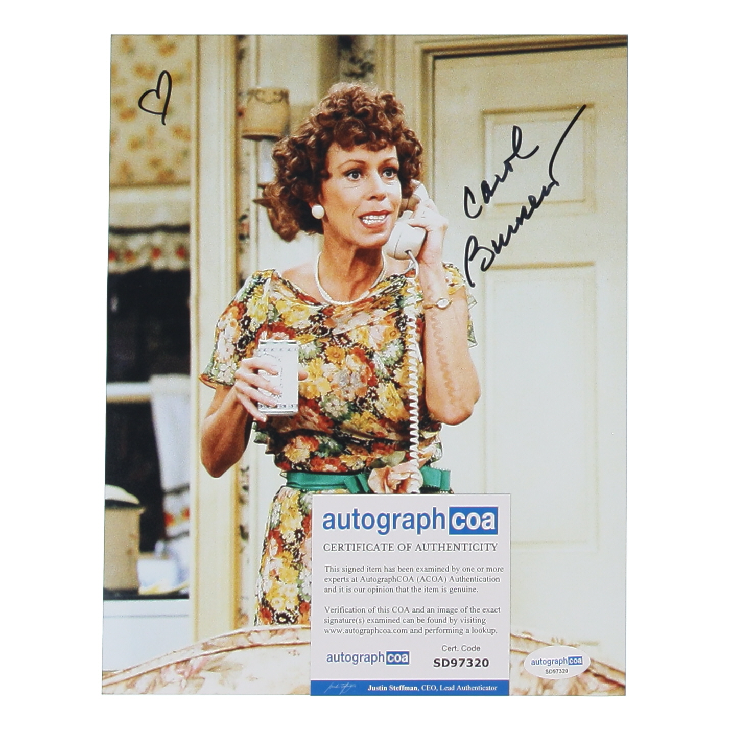 Photo measures 8" x 10" in size and has been hand-signed by Carol Burnett.