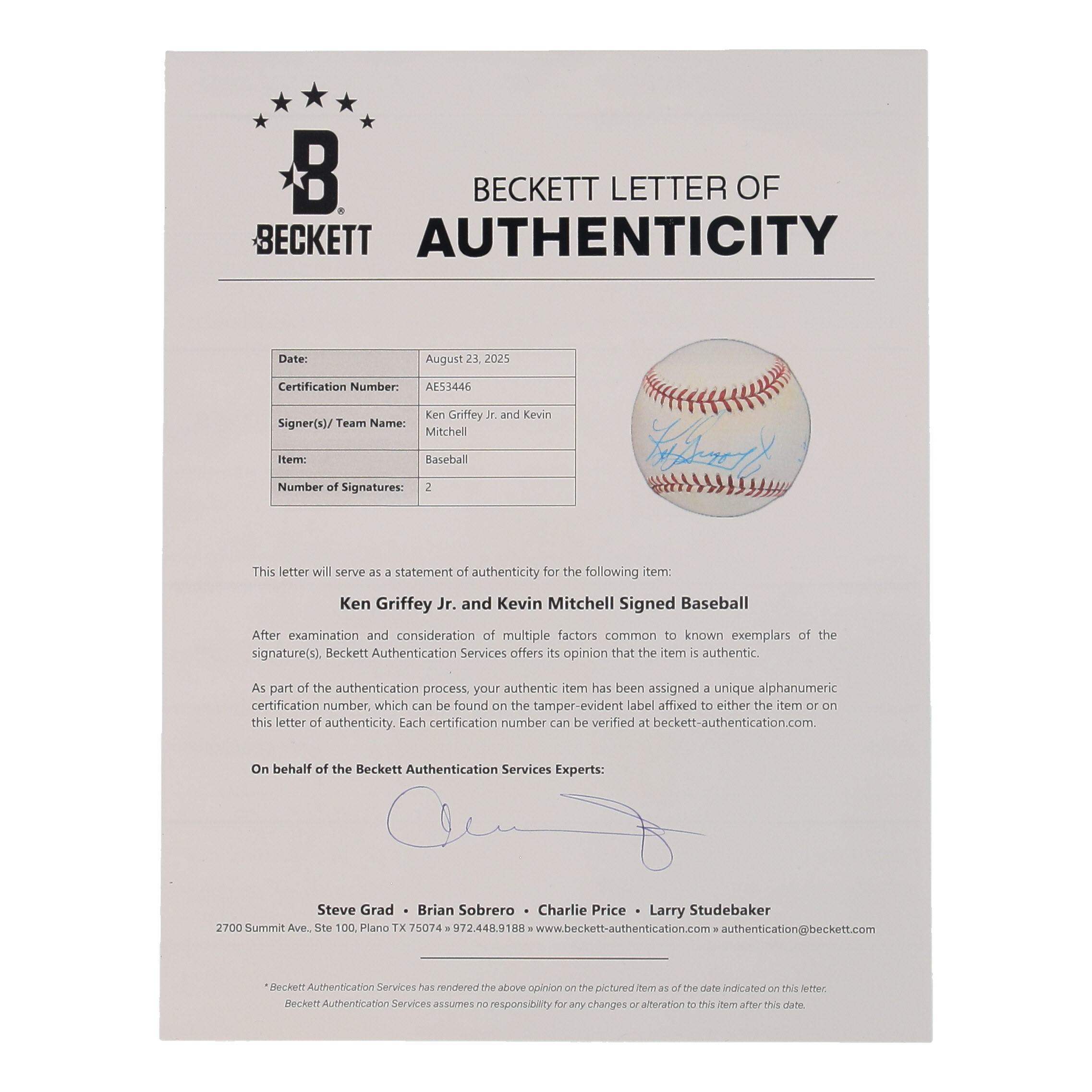 Kevin Mitchell & Ken Griffey Jr. Signed OAL Baseball (Beckett)