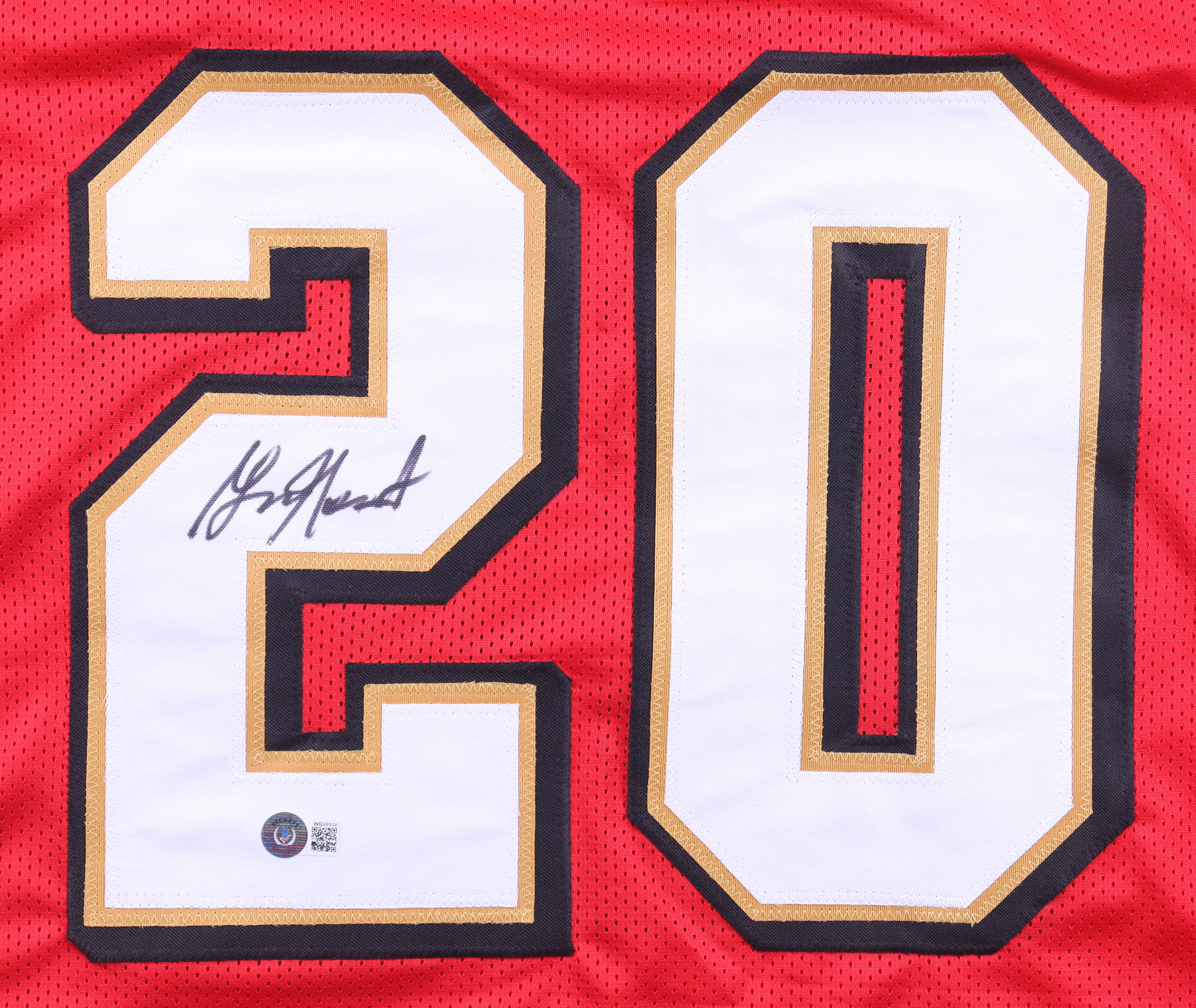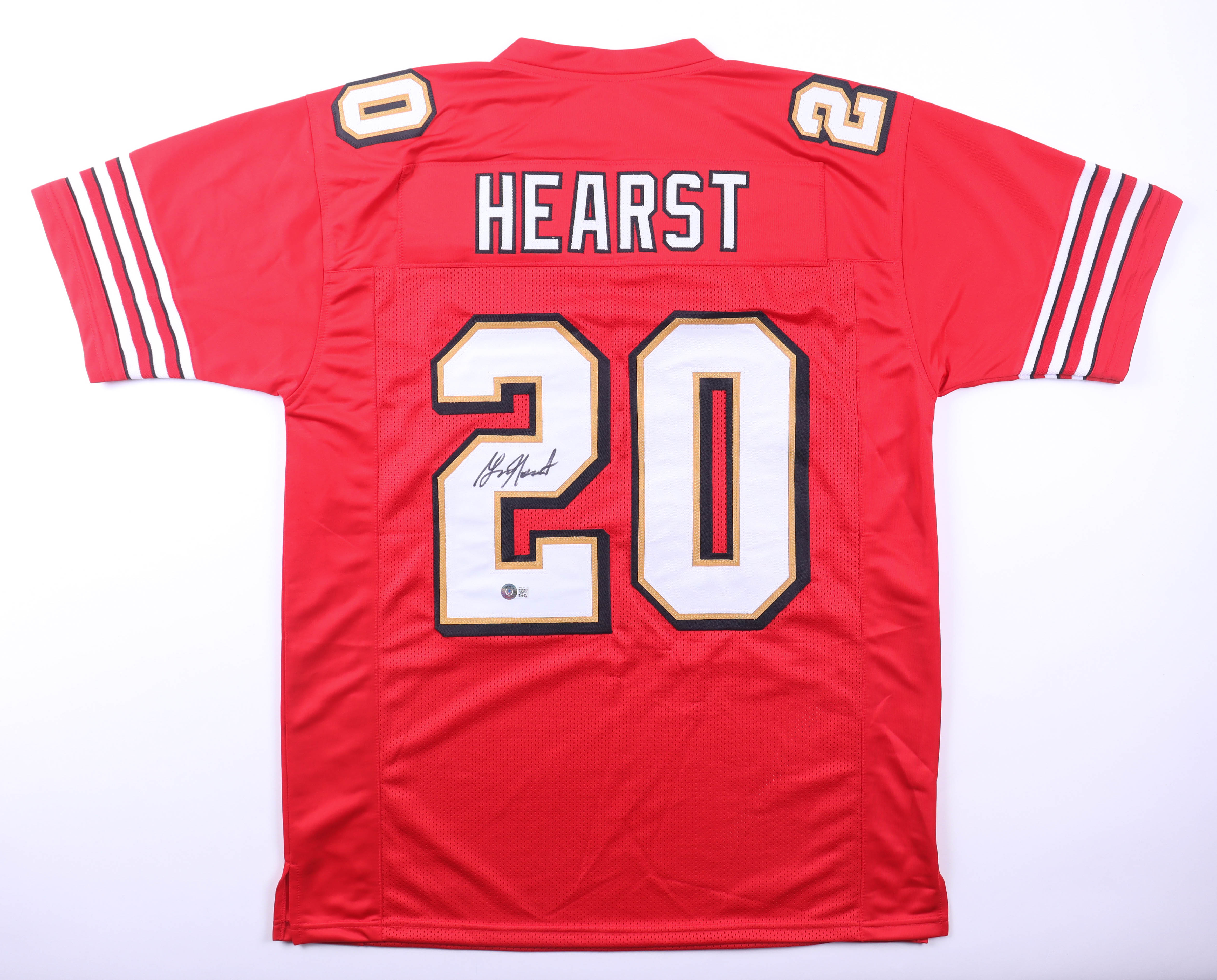 Custom jersey with everything sewn on, size XL. Hand-signed by Garrison Hearst.