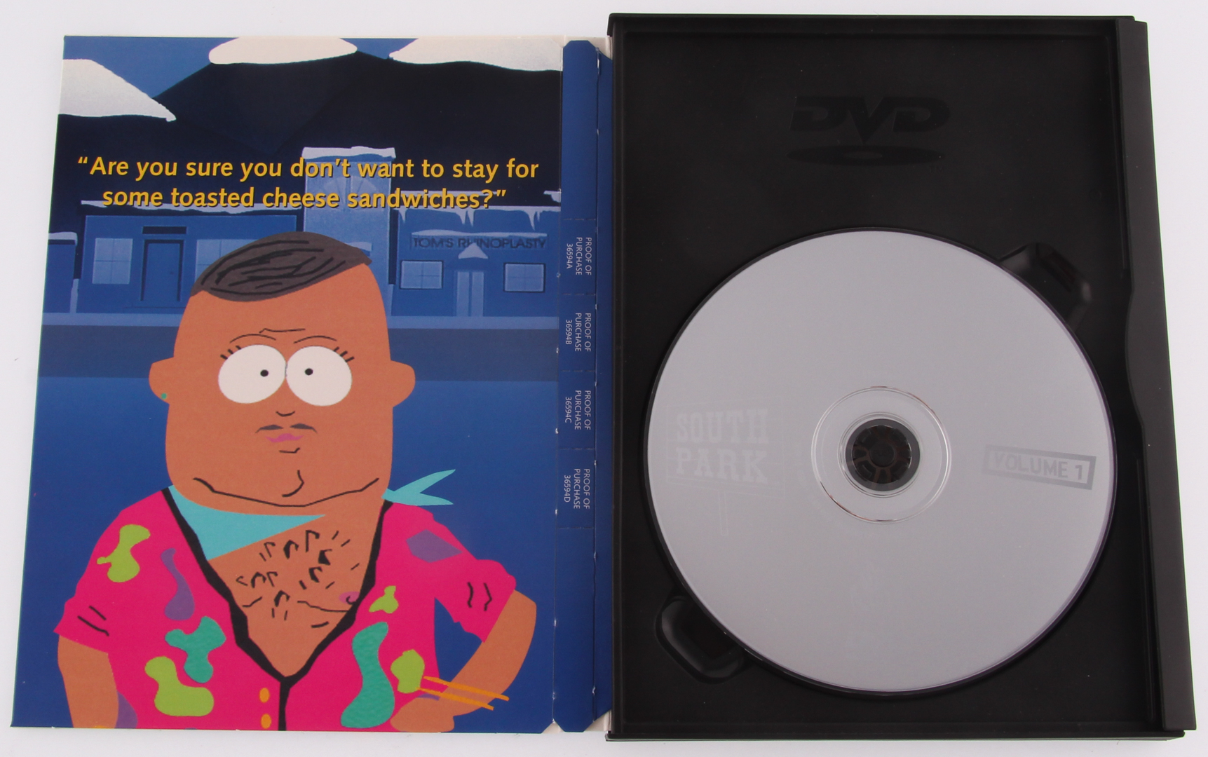 "South Park Vol 1" DVD case has been hand-signed in blue felt-tip pen by the co-creator of South Park, Trey Parker.