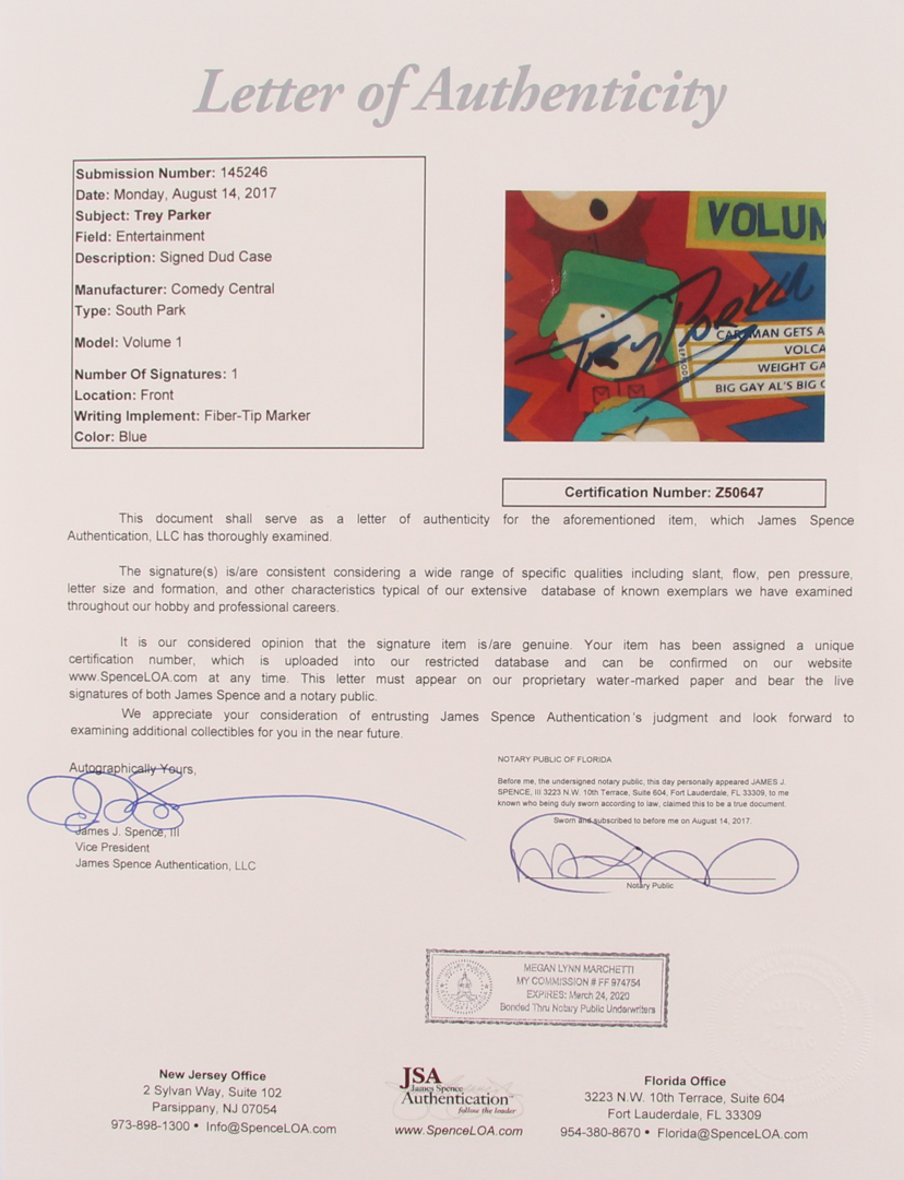 Trey Parker Signed "South Park Vol 1" DVD (JSA LOA)