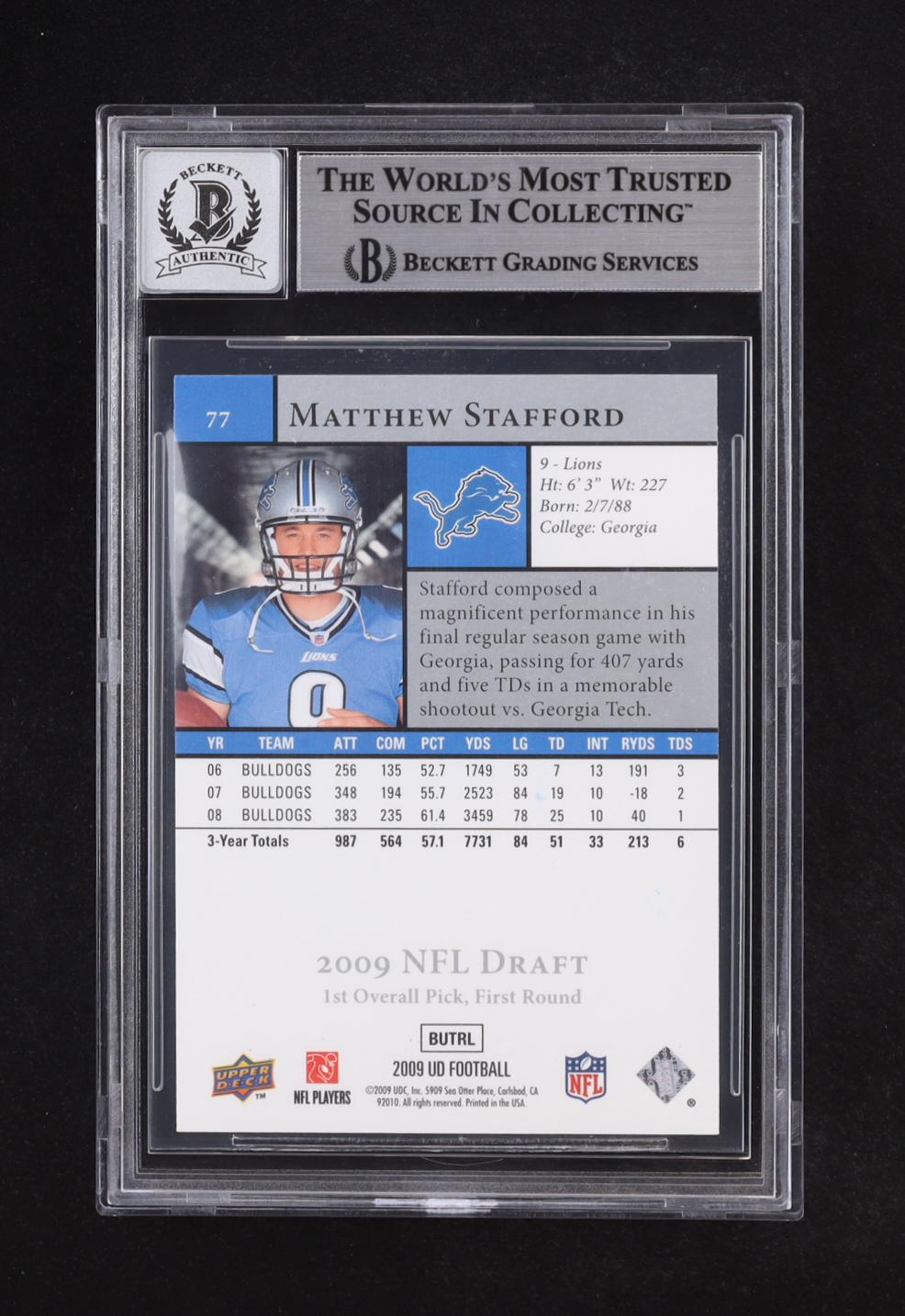 Matthew Stafford Signed 2009 Upper Deck Rookie Exclusives #77 RC (BGS | Auto 10)