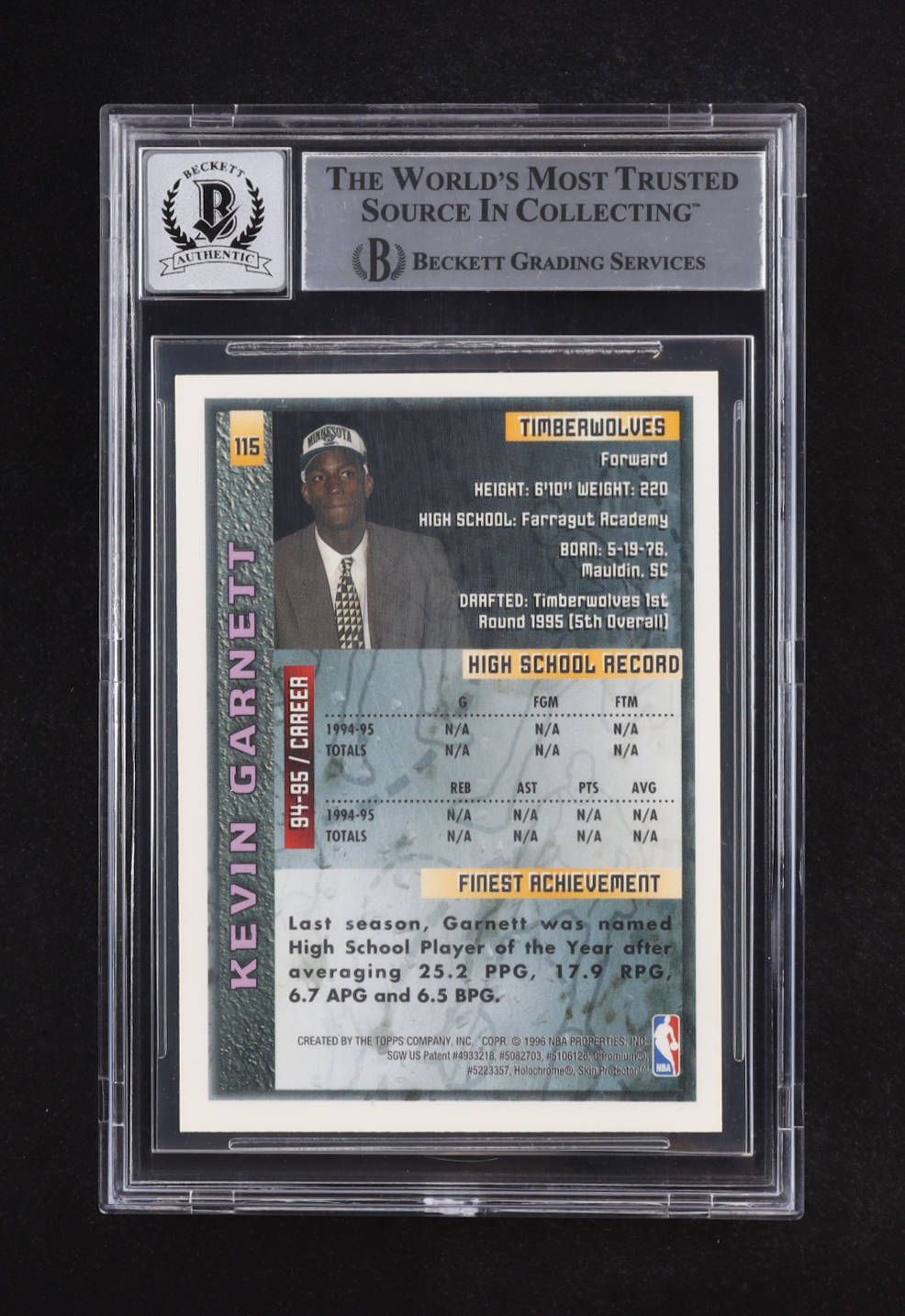 Kevin Garnett Signed 1995-96 Finest #115 RC (BGS | Auto 10)