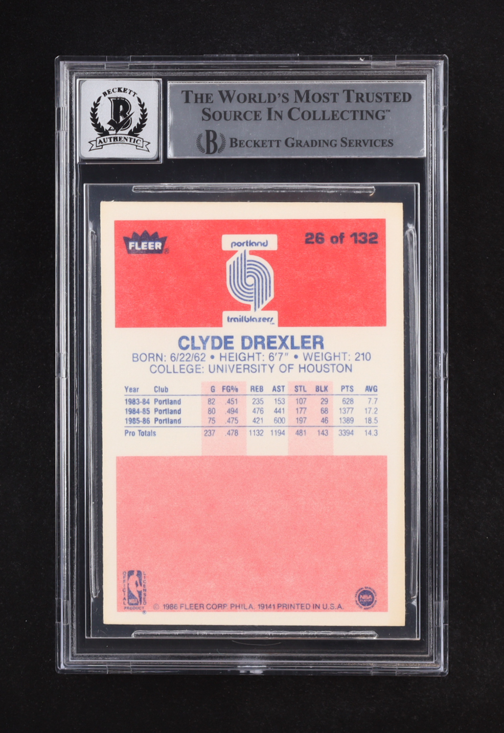 Clyde Drexler Signed 1986-87 Fleer #26 RC (BGS | Auto 10)