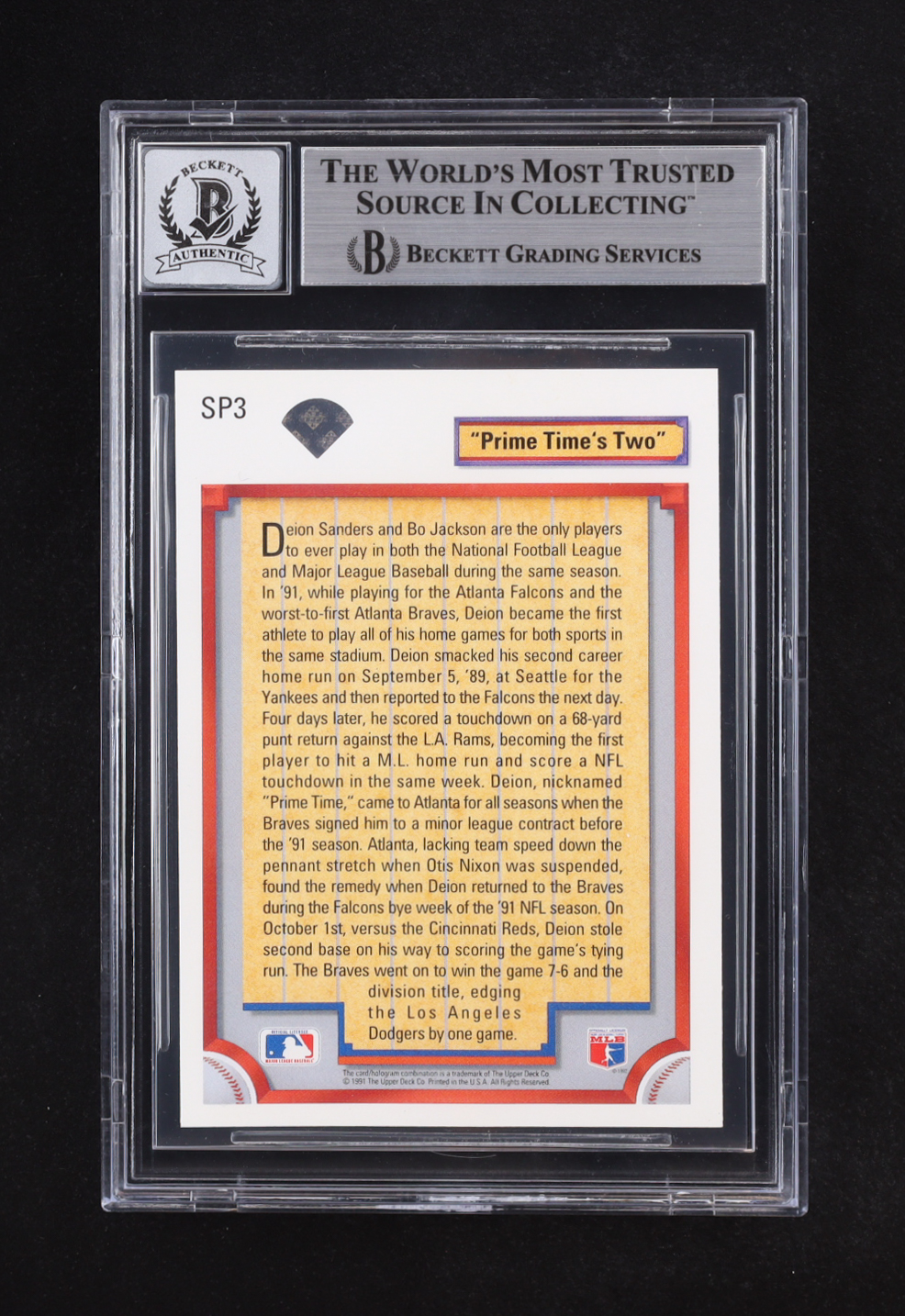 Deion Sanders Signed 1992 Upper Deck #SP3 FB/BB RC (BGS | Auto 10)