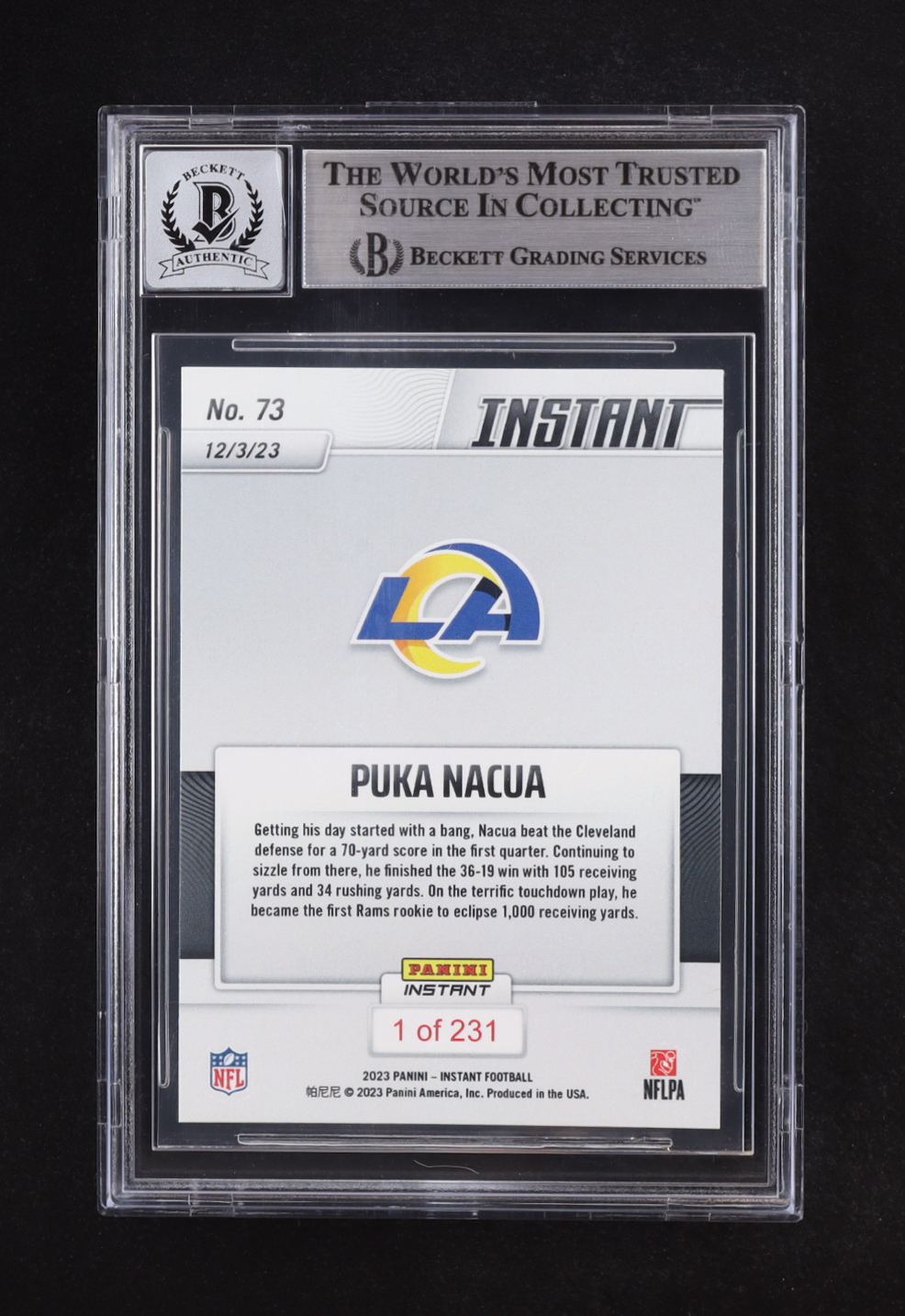Puka Nacua Signed 2023 Panini Instant #73 RC (BGS | Auto 10)