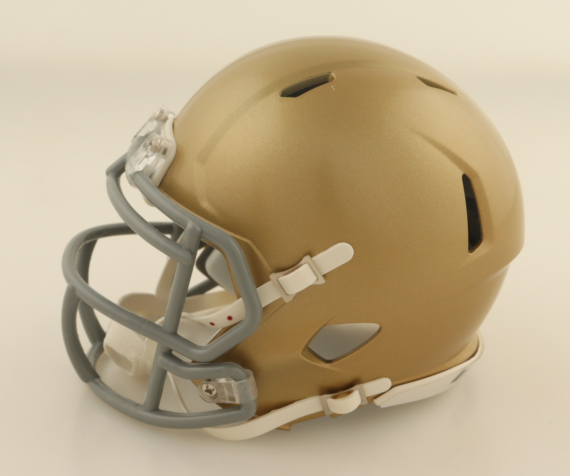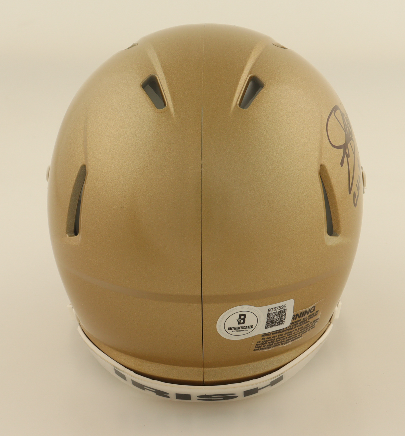 Riddell Notre Dame Fighting Irish Speed mini helmet has been hand-signed and inscribed by Joe Theismann (HOF).