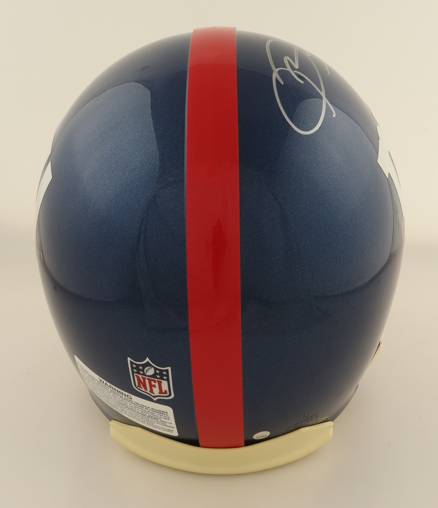 Riddell New York Giants full-size authentic on-field throwback helmet. Hand-signed by Odell Beckham Jr..