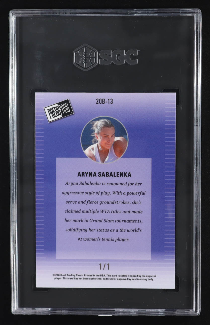 Aryna Sabalenka 2024 Leaf Collective '00 Press Pass Super Prismatic Gold #20B13 #1/1 (SGC 9.5)