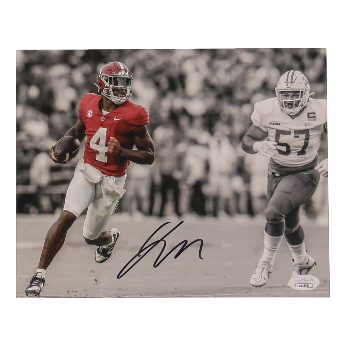 Photograph measures 8" x 10" in size. Hand-signed by Jalen Milroe.