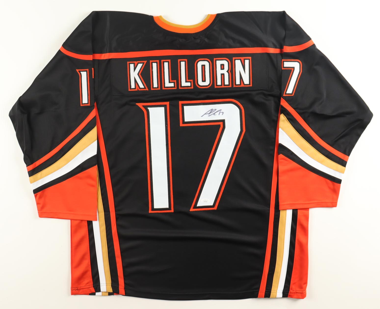 Custom jersey. Everything is sewn on, size XL. Hand-signed by Alex Killorn. Please note, the signature has bled.