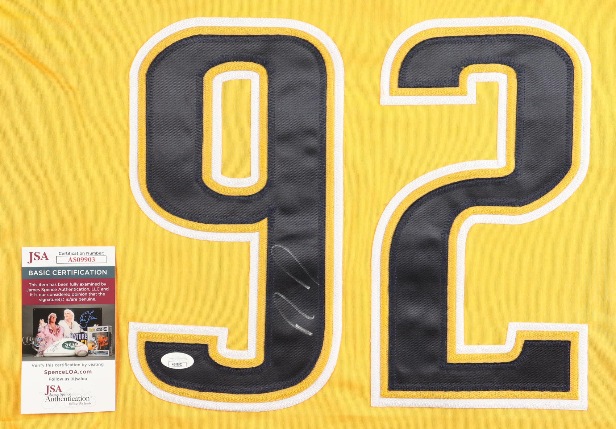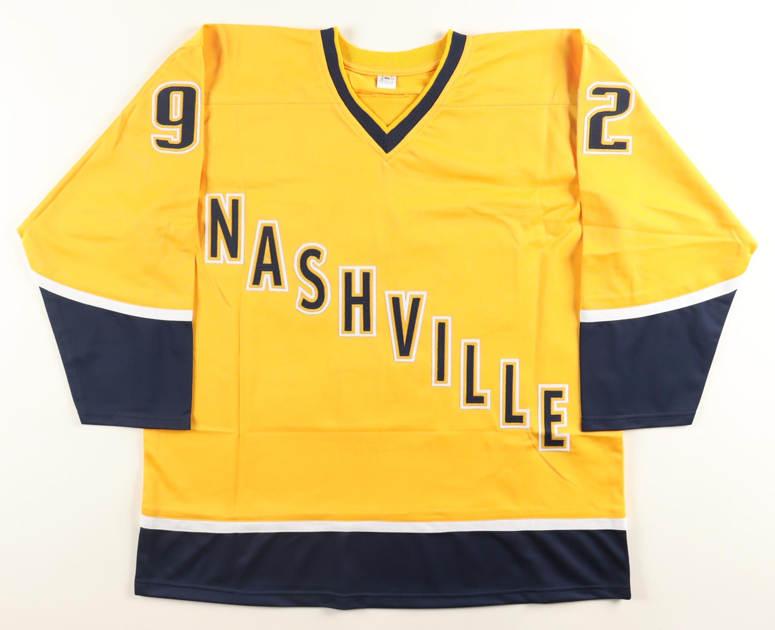 Custom jersey. Everything sewn on, size XL. Hand-signed by Ryan Johansen.