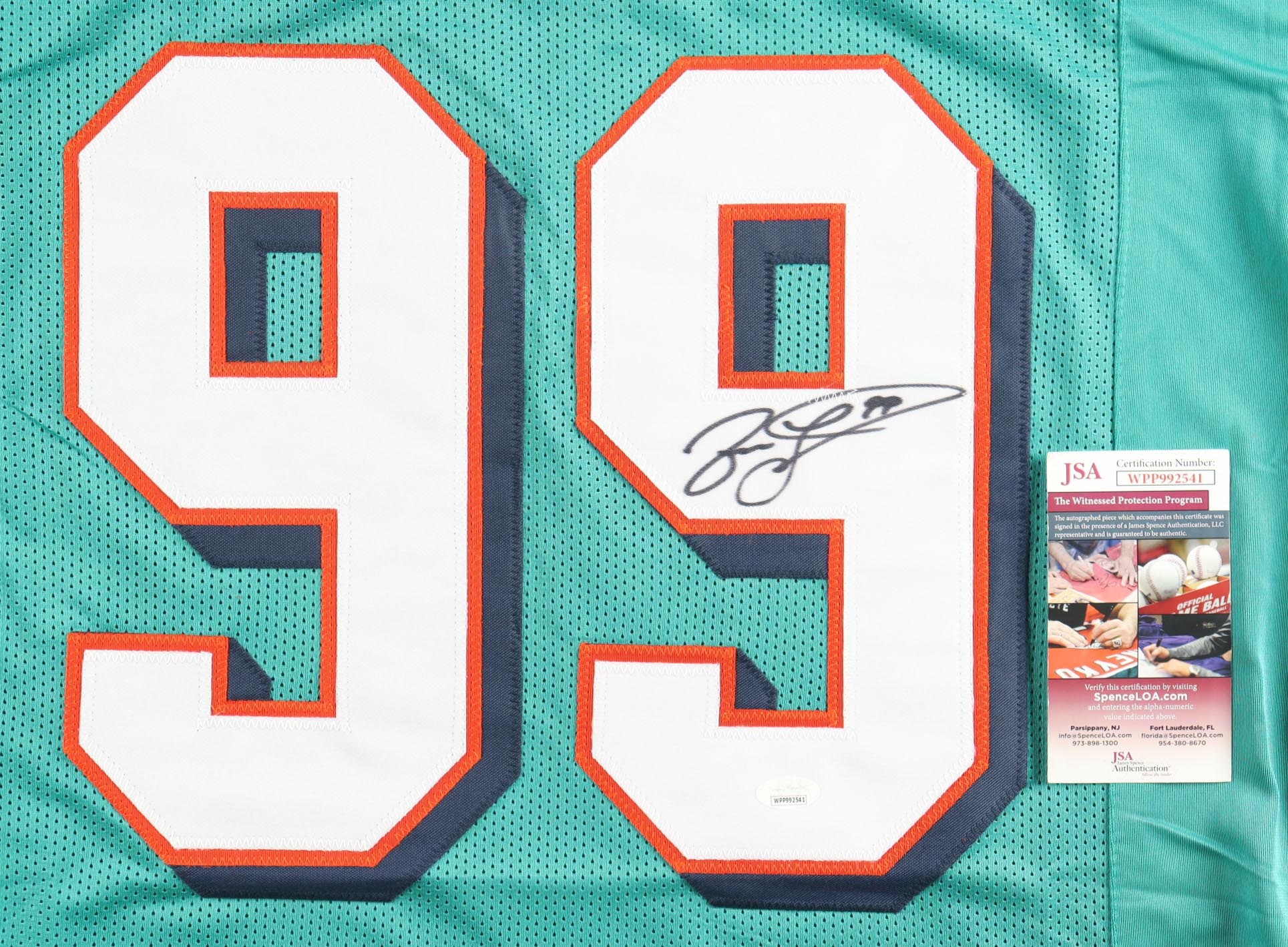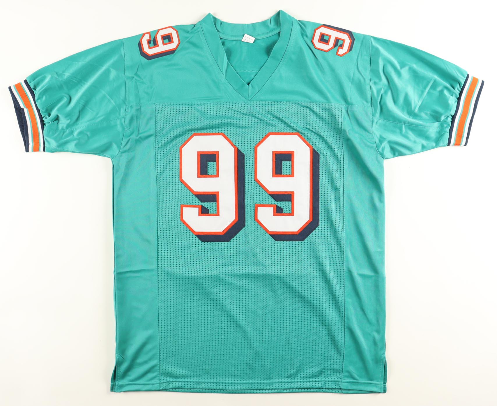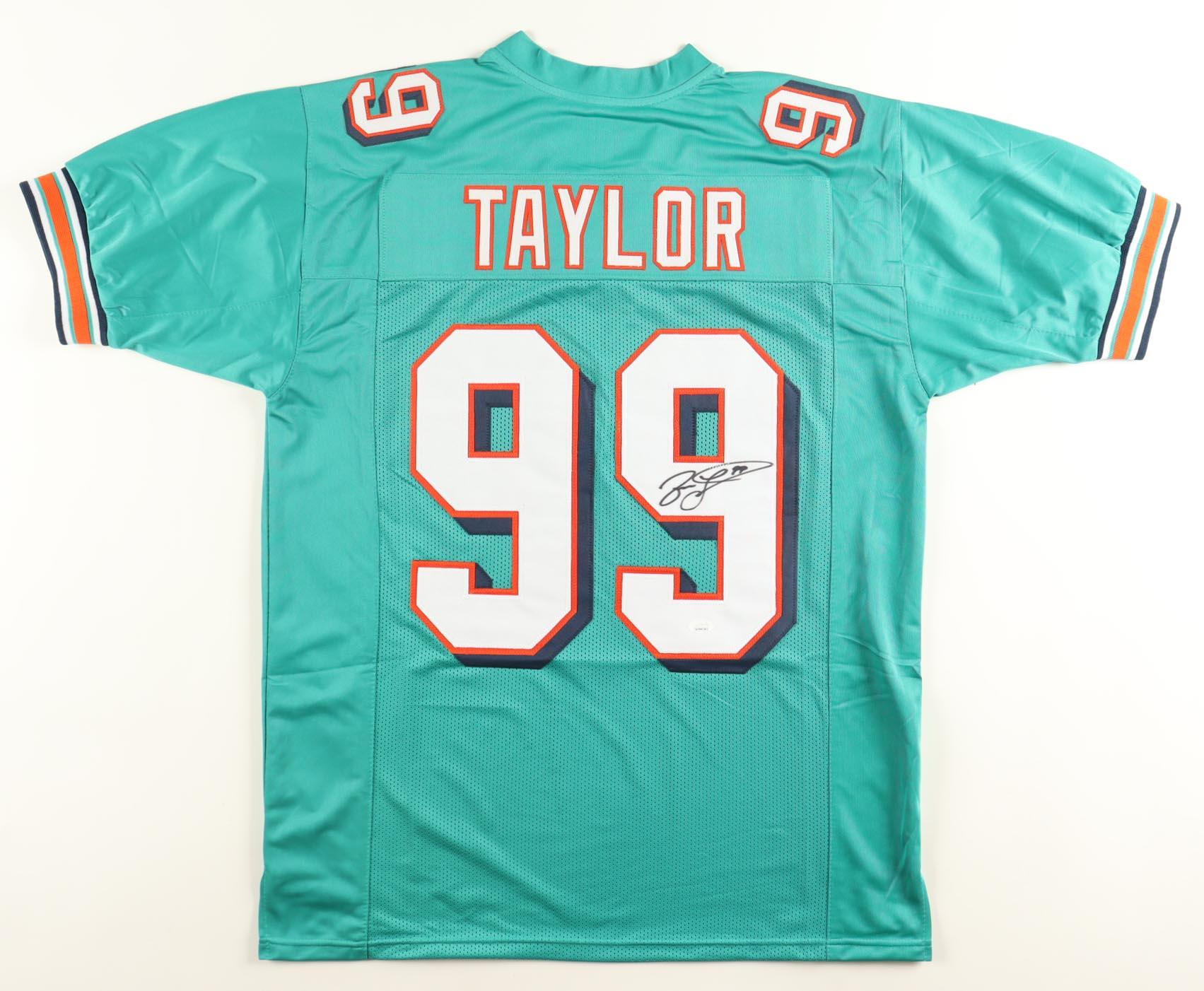 Custom jersey with everything sewn on, size XL. Hand-signed by Jason Taylor.