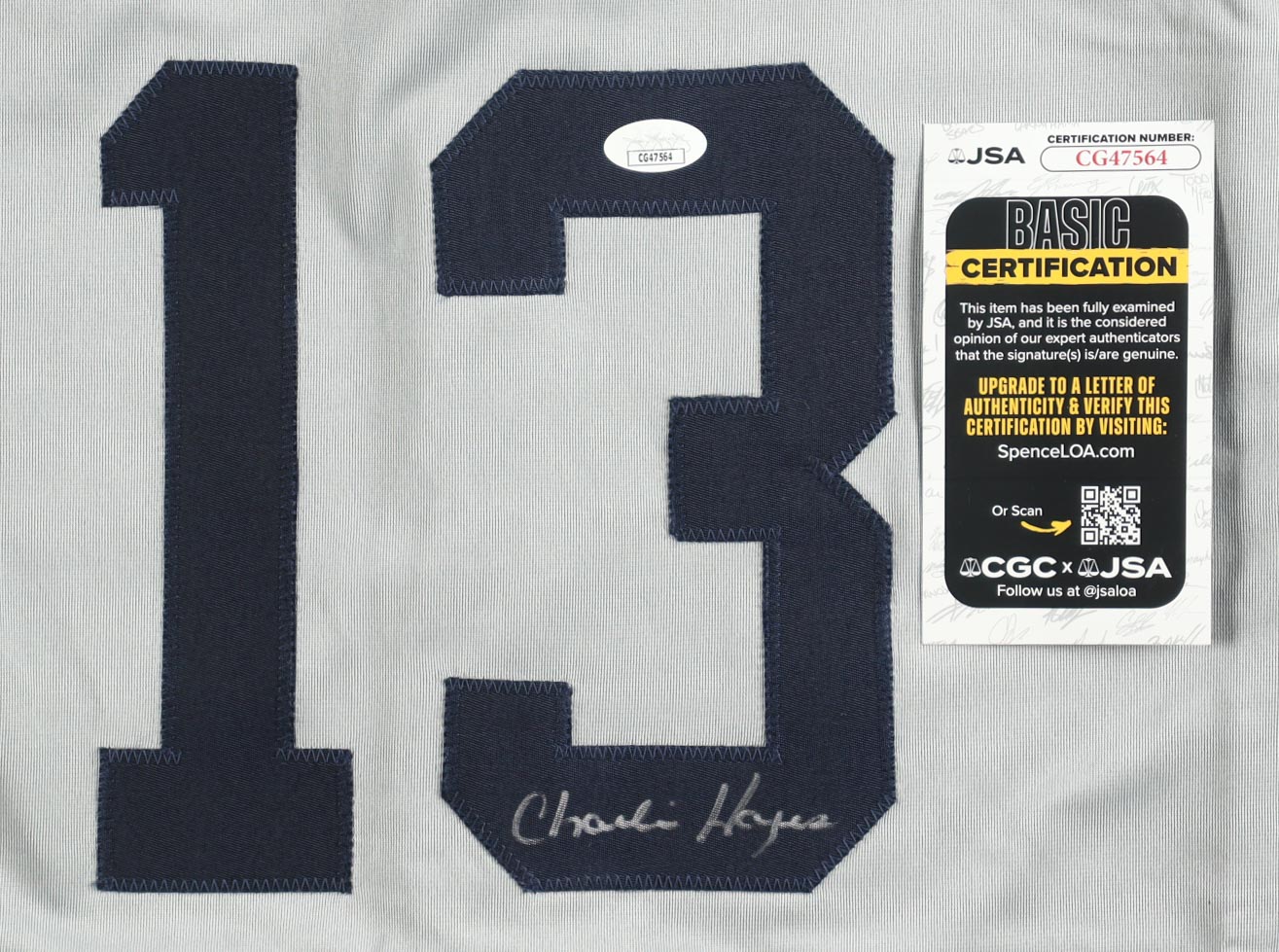 Custom jersey with everything sewn on, size XL. Hand-signed by Charlie Hayes.