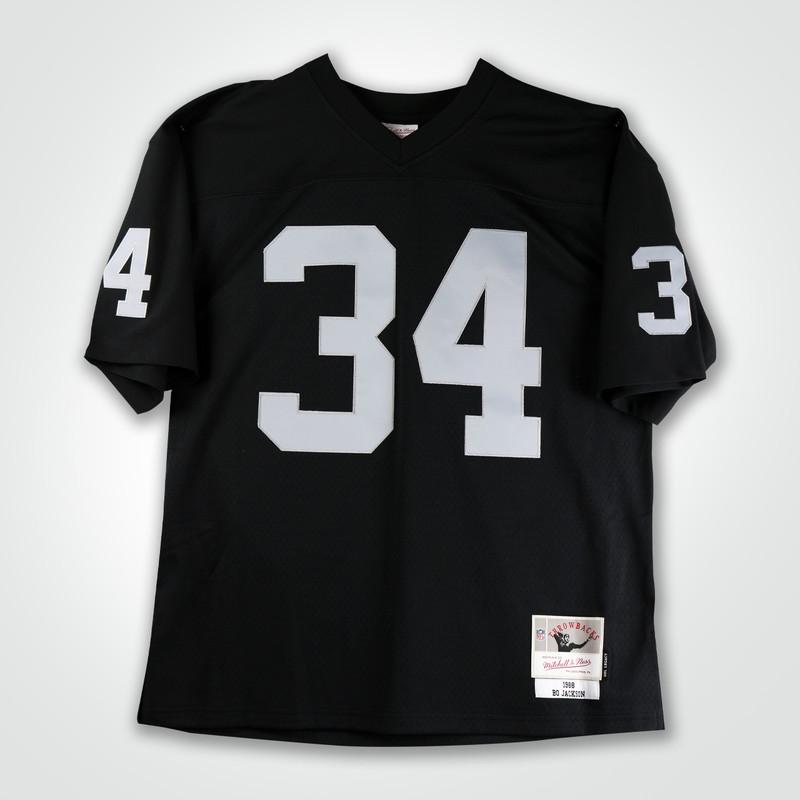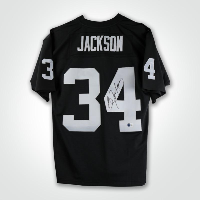 Mitchell & Ness jersey with everything sewn on, size XL. Hand-signed by Bo Jackson (Oakland Raiders).