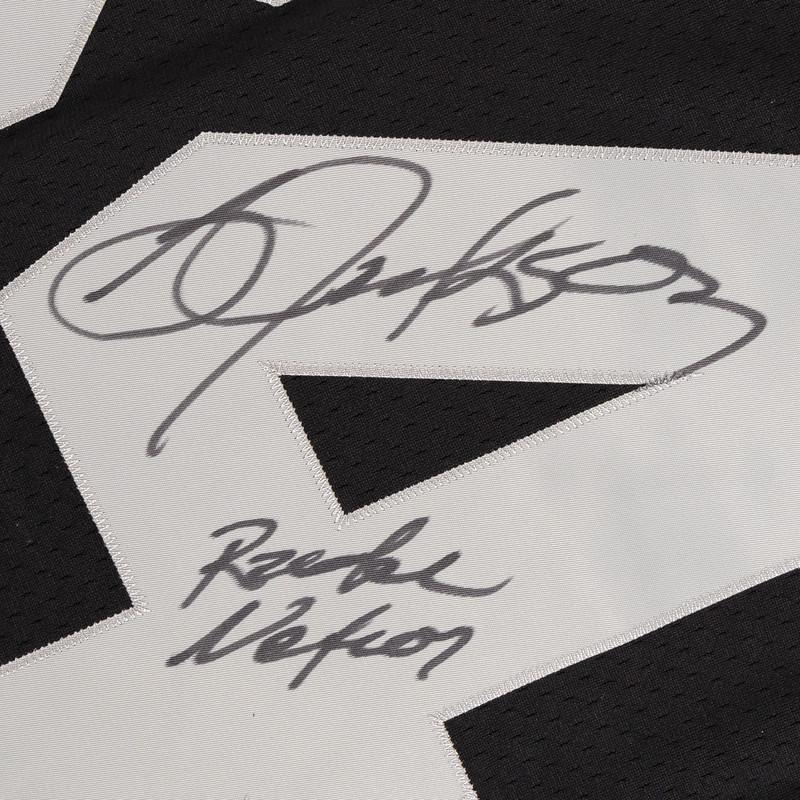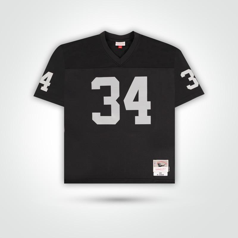 Mitchell & Ness jersey with everything sewn on, size XL. Hand-signed and inscribed by Bo Jackson (Oakland Raiders).