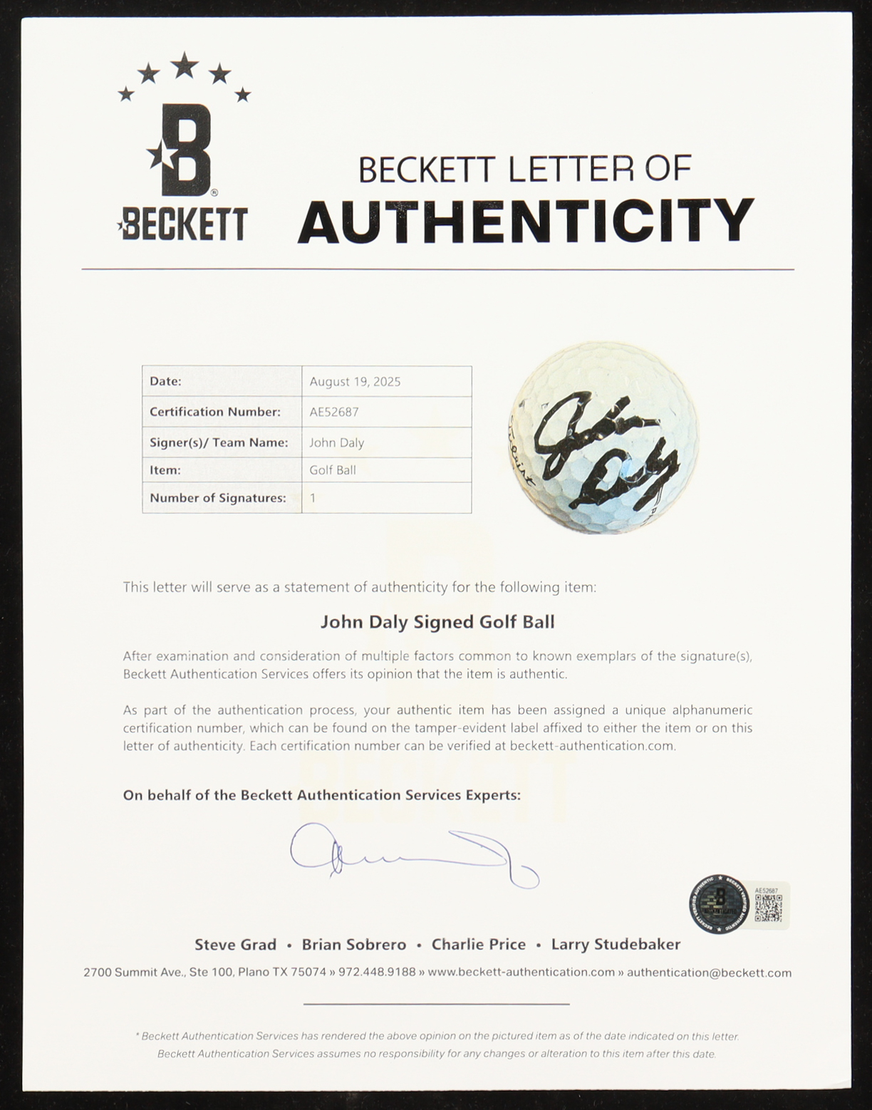The autograph includes an official Beckett Authentication Services hologram and matching LOA for authenticity purposes.