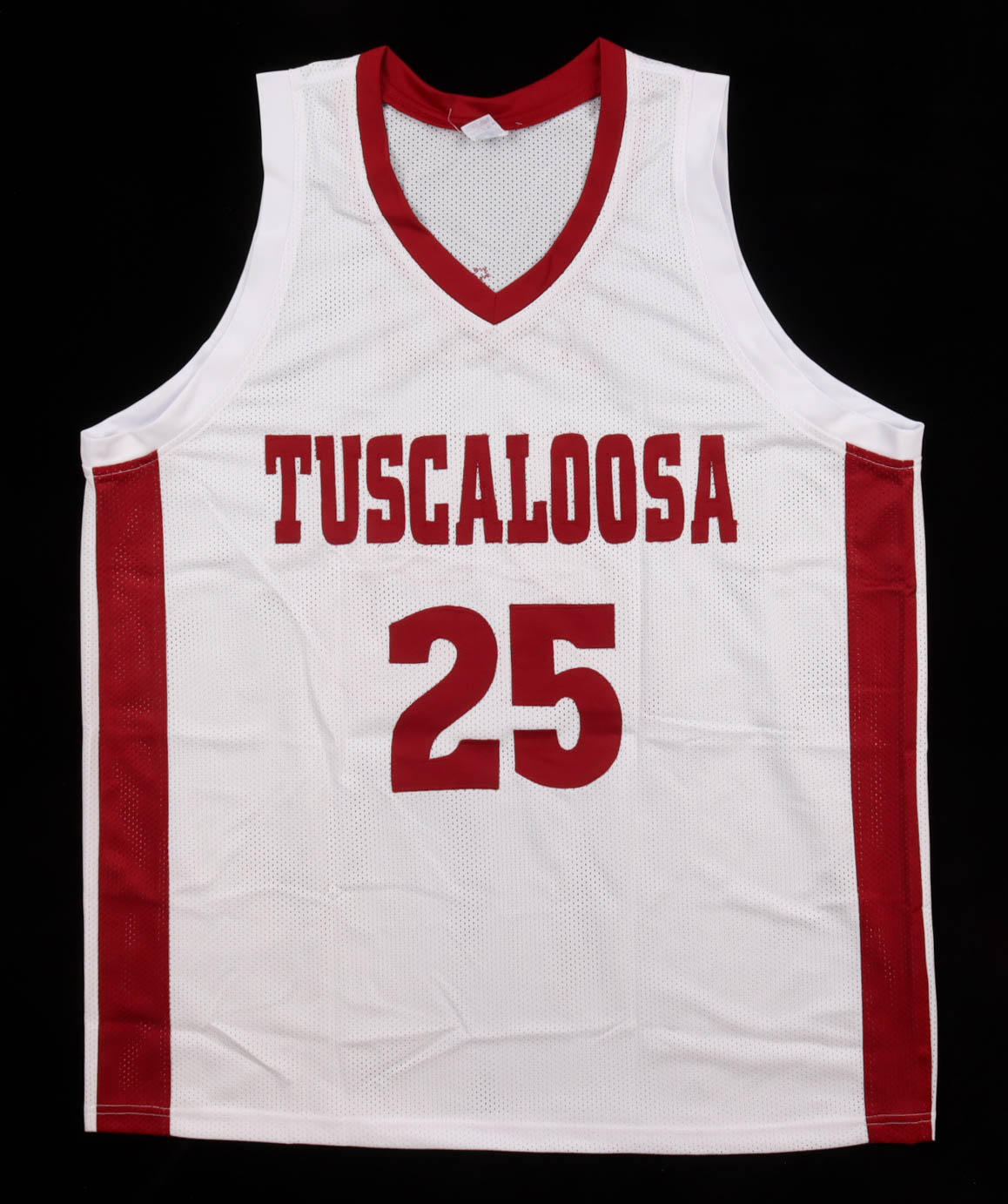 Custom jersey with everything sewn on, size XL. Team-signed by (9) members of the Alabama Crimson Tide, including Mark Sears, Chris Youngblood, Grant Nelson, Aden Holloway, Labaron Philon, Latrell Wrightsell Jr, Derrion Reid, Clifford Omoruyi, & Mouhamed Dioubate. Please note, there is a stain on the back of the jersey. See photos regarding the condition of the item.